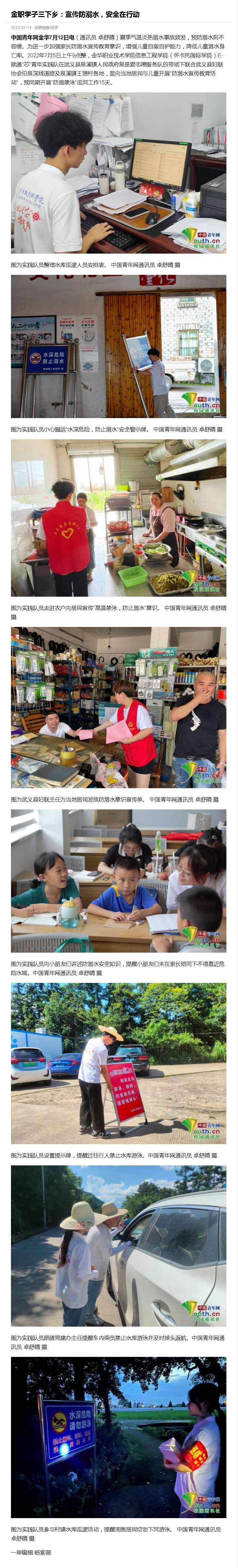 【中国青年网金华】金职学子三下乡:宣传防溺水,安全在行动