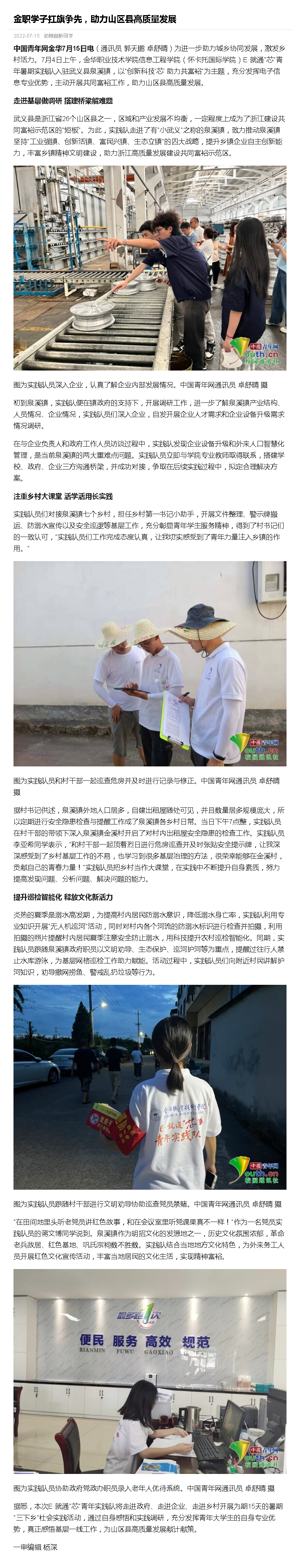 【中国青年网金华】金职学子扛旗争先,助力山区县高质量发展