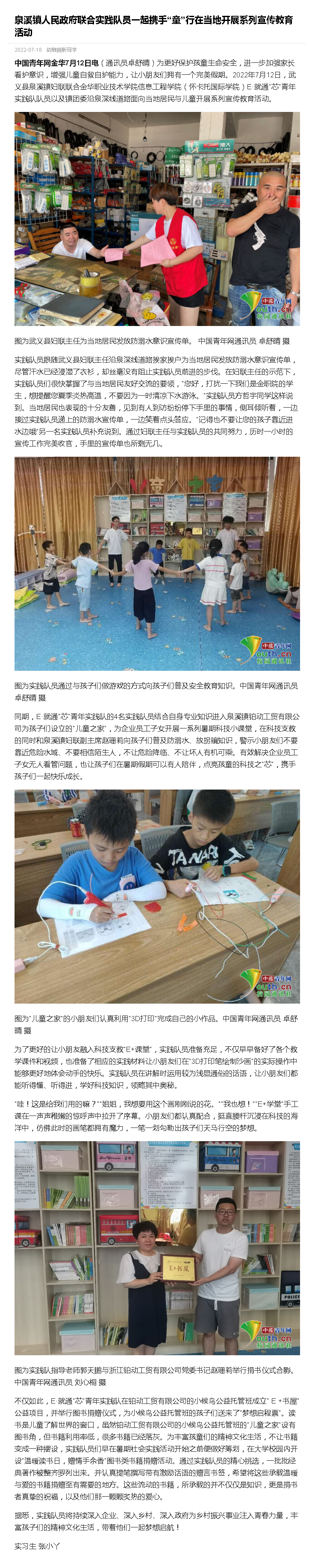【中国青年网金华】泉溪镇人民政府联合实践队员一起携手“童”行在当地开展系列宣传教育活动