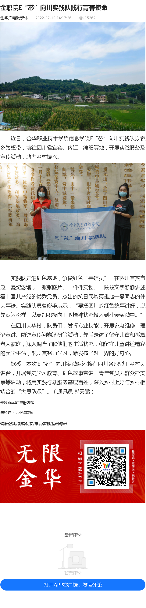 【无限金华】金职院E“芯”向川实践队践行青春使命