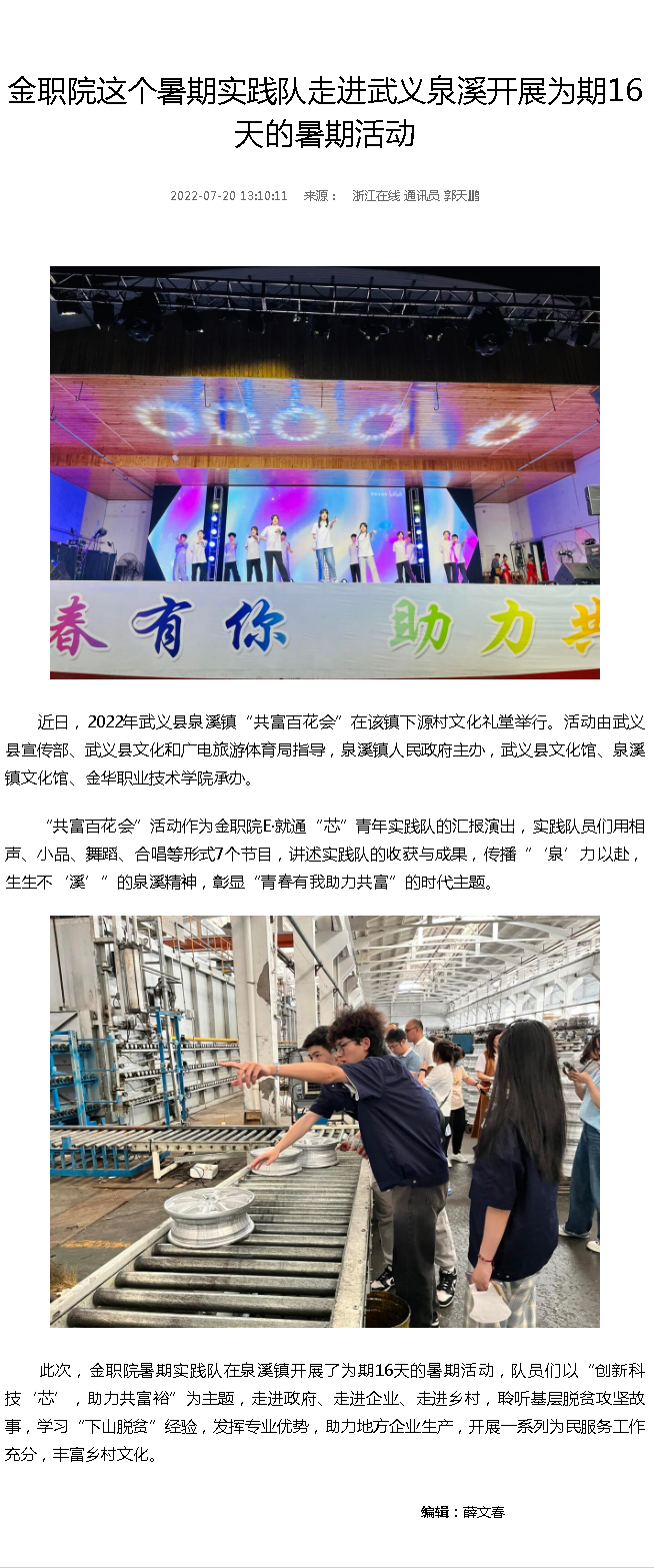 【浙江在线金华】金职院这个暑期实践队走进武义泉溪开展为期16天的暑期活动