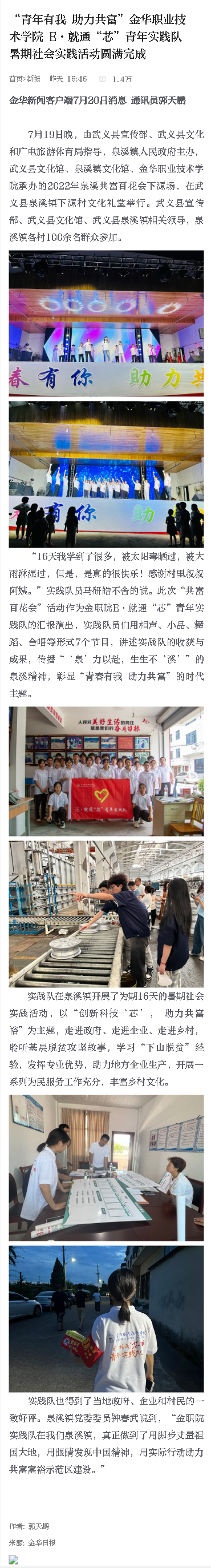 【金华新闻客户端】“青年有我 助力共富”金华职业技术学院 E·就通“芯”青年实践队暑期社会实践活动圆满完成