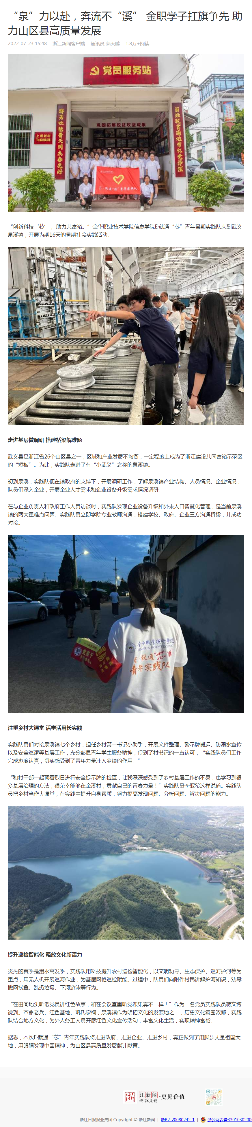【浙江新闻客户端】“泉”力以赴,奔流不“溪” 金职学子扛旗争先 助力山区县高质量发展