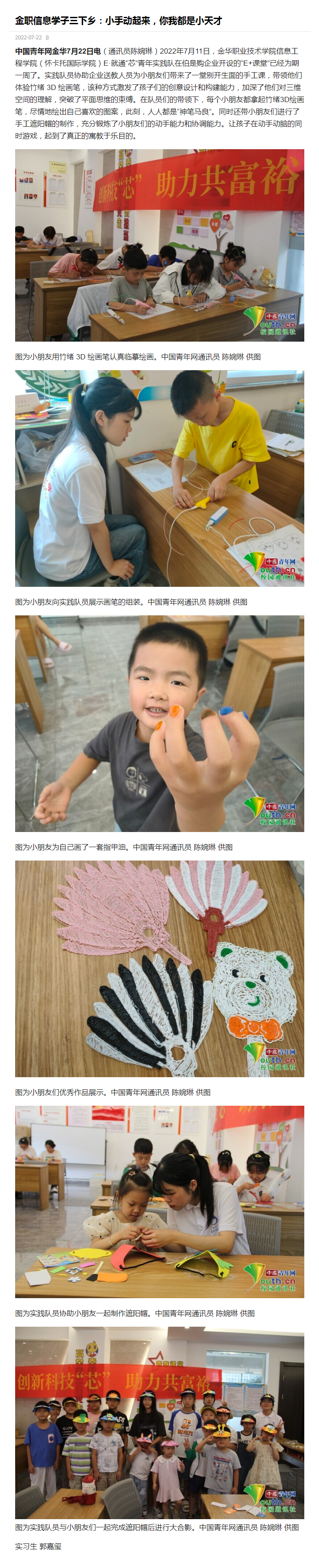 【中国青年网金华】金职信息学子三下乡:小手动起来,你我都是小天才