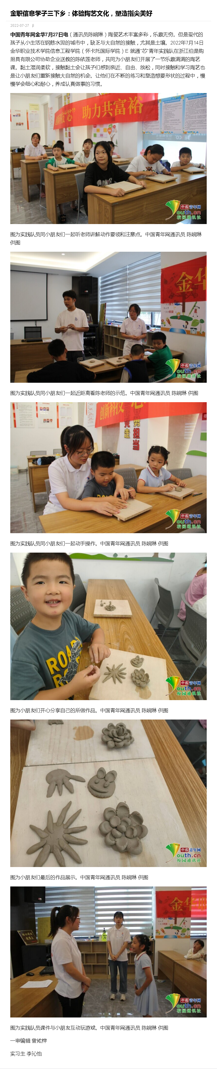 【中国青年网金华】金职信息学子三下乡:体验陶艺文化,塑造指尖美好