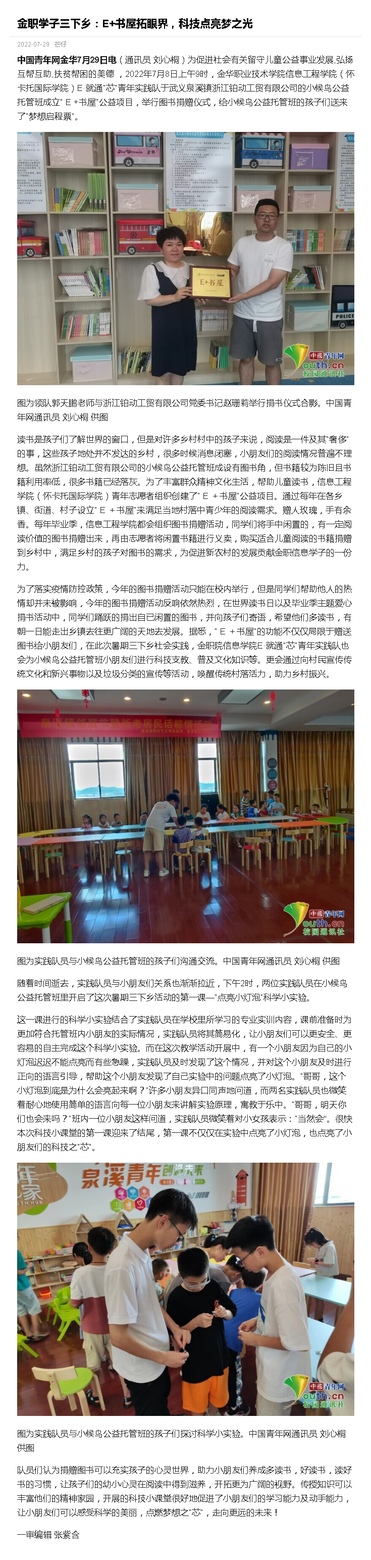 【中国青年网金华】金职学子三下乡:E+书屋拓眼界,科技点亮梦之光