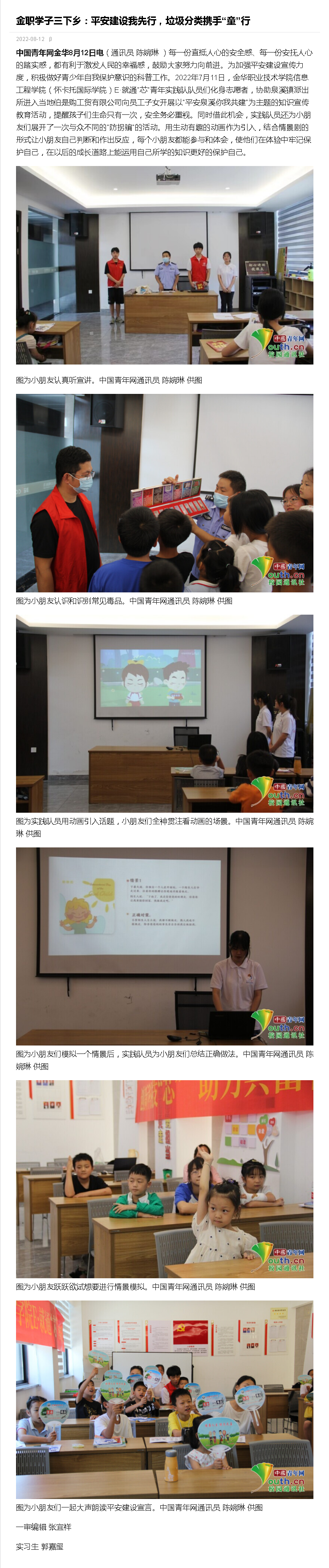 【中国青年网金华】金职学子三下乡:平安建设我先行,垃圾分类携手“童”行