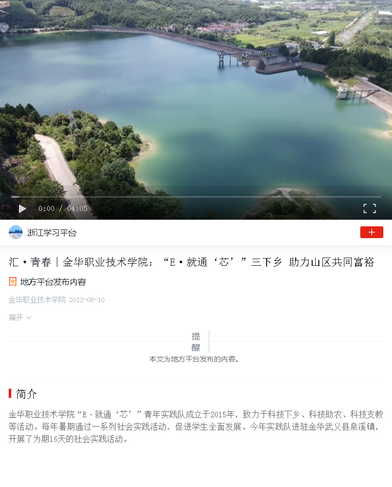【学习强国】汇·青春丨金华职业技术学院:“E·就通‘芯’”三下乡 助力山区共同富裕