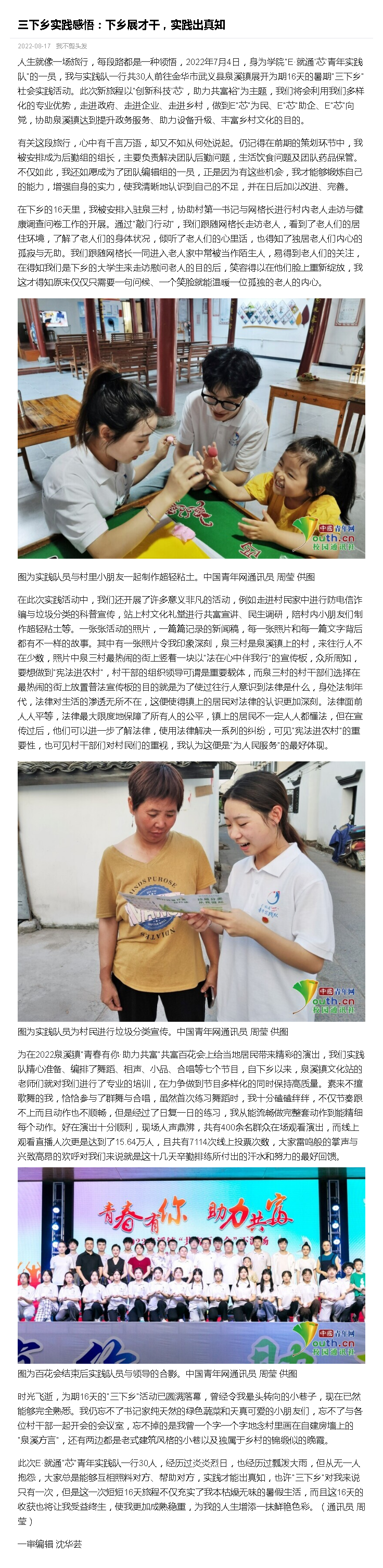 【中国青年网金华】三下乡实践感悟:下乡展才干,实践出真知