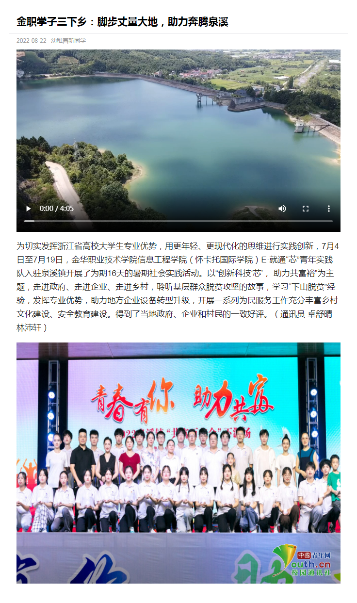 【中国青年网金华】金职学子三下乡:脚步丈量大地,助力奔腾泉溪