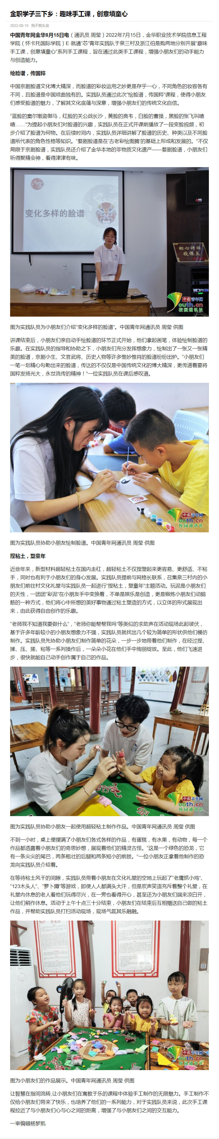 【中国青年网金华】金职学子三下乡:趣味手工课,创意填童心