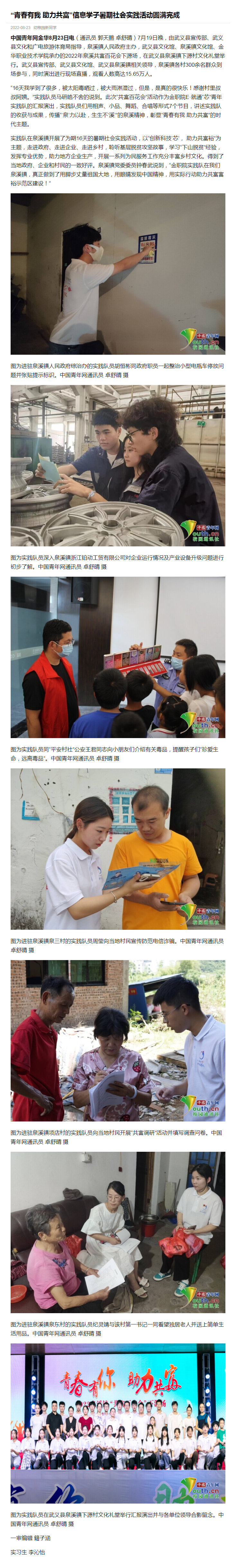 【中国青年网金华】“青春有我 助力共富”信息学子暑期社会实践活动圆满完成
