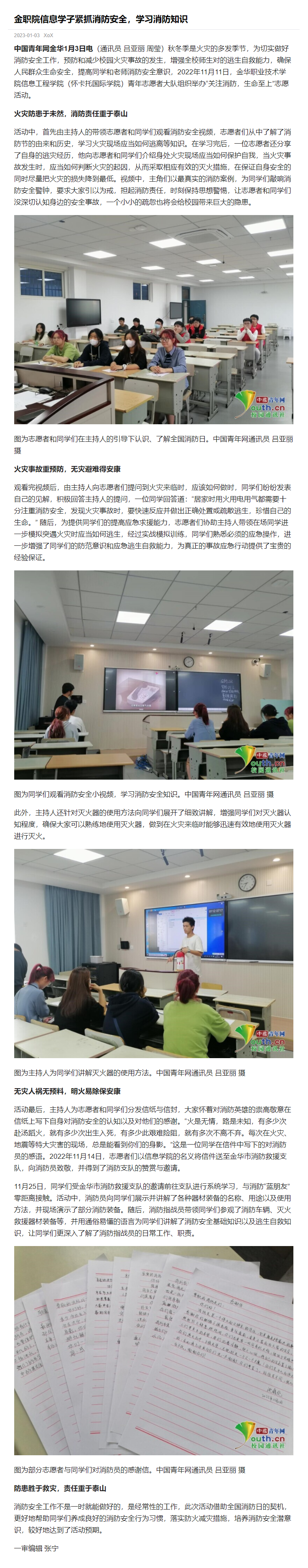 【中青网金华】金职院信息学子紧抓消防安全,学习消防知识