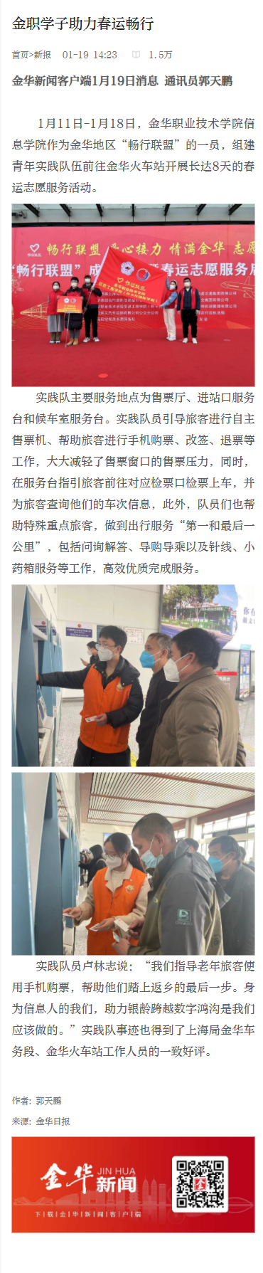 【金华新闻客户端】金职学子助力春运畅行