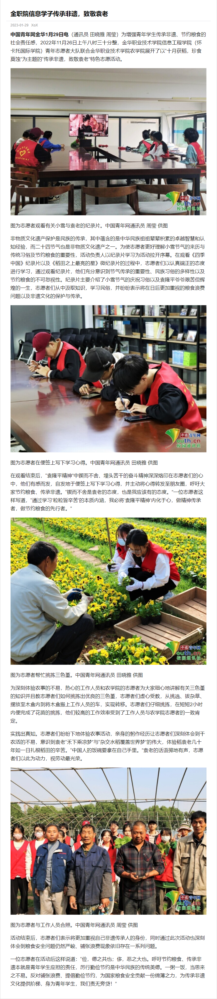 【中青网金华】金职院信息学子传承非遗,致敬袁老