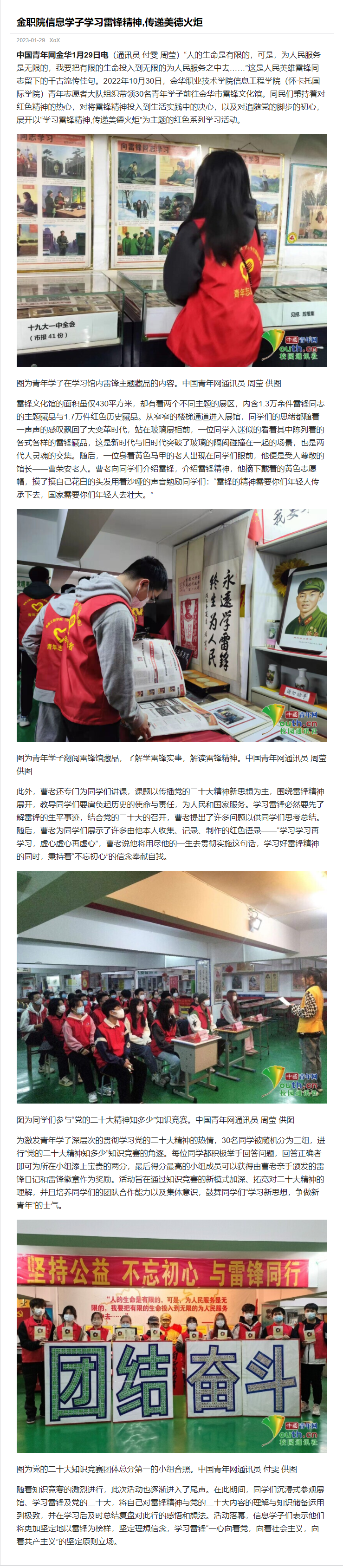 【中青网】金职院信息学子学习雷锋精神,传递美德火炬