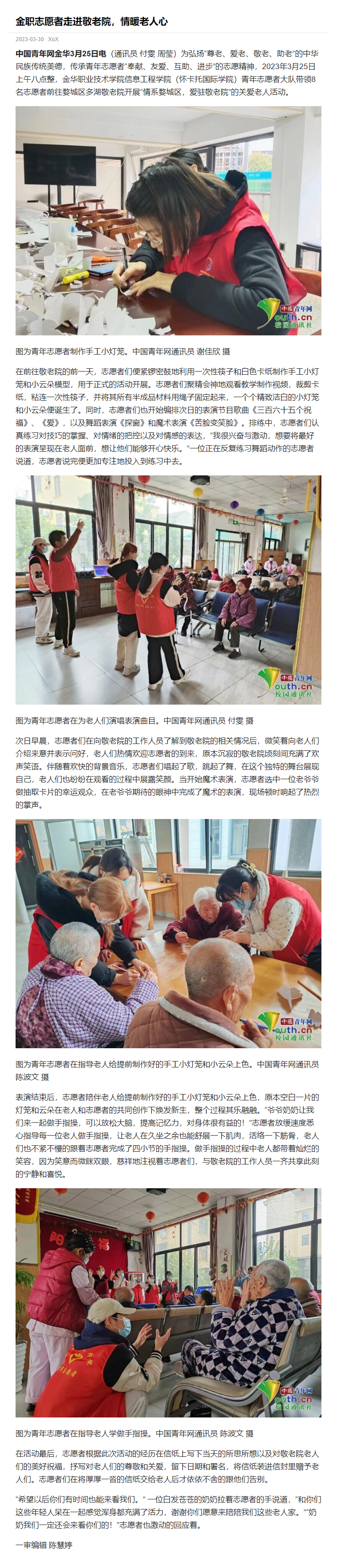 【中国青年网金华】金职志愿者走进敬老院,情暖老人心