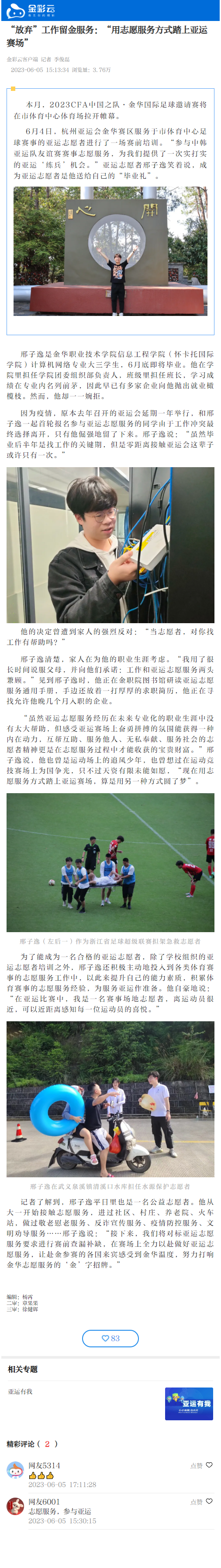 【金彩云】“放弃”工作留金服务:“用志愿服务方式踏上亚运赛场”