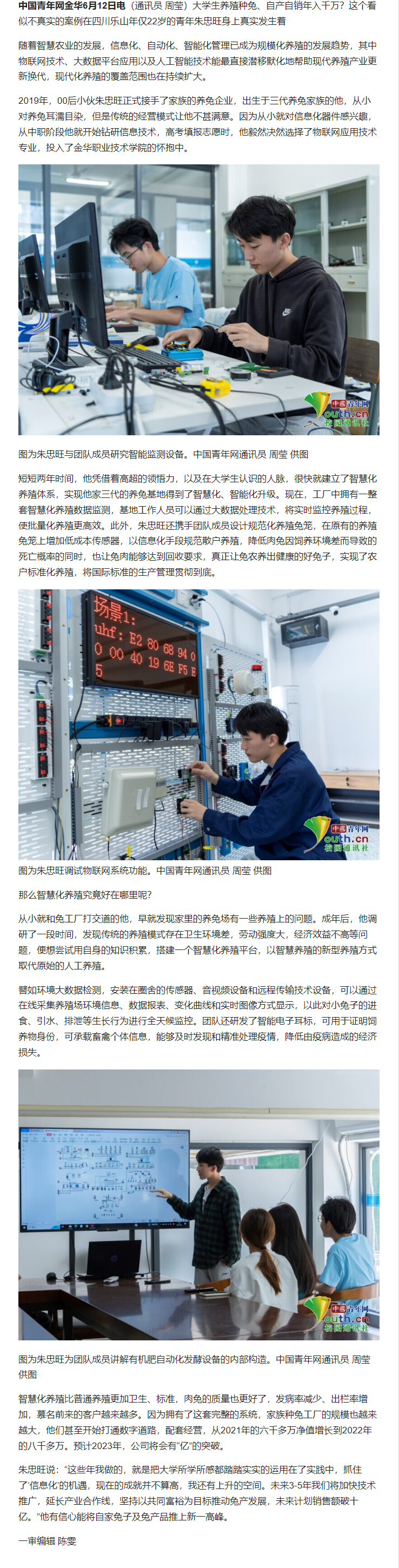 【中国青年网金华】四川乐山00后小伙搭建智慧养殖平台,打造信息化兔全产业链