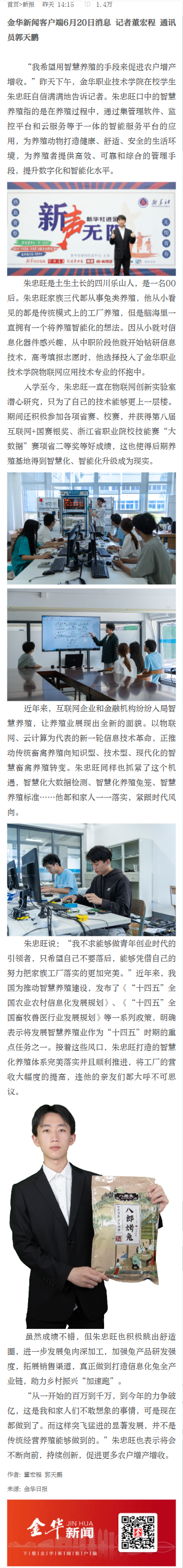 【金华新闻客户端】金职院00后小伙升级智能养殖系统,促进农户增产增收