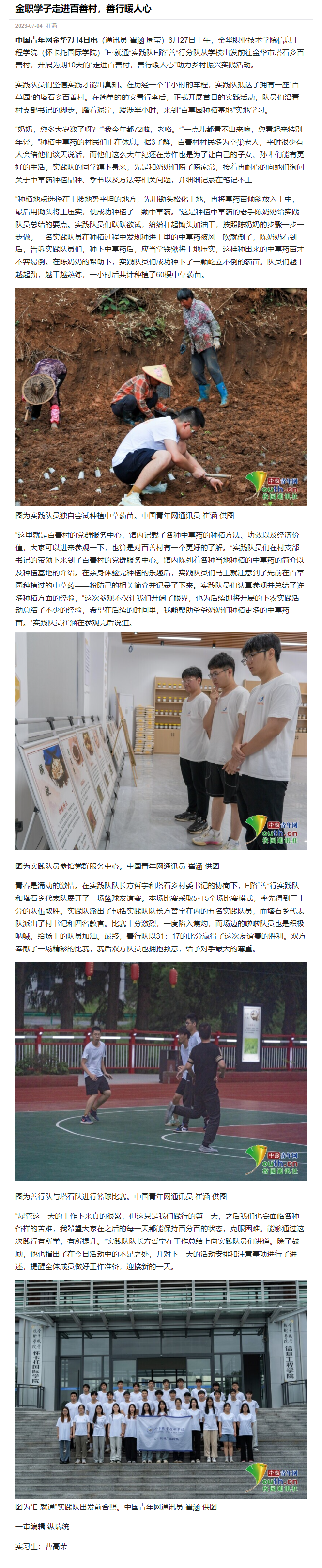 【中国青年网金华】金职学子走进百善村,善行暖人心