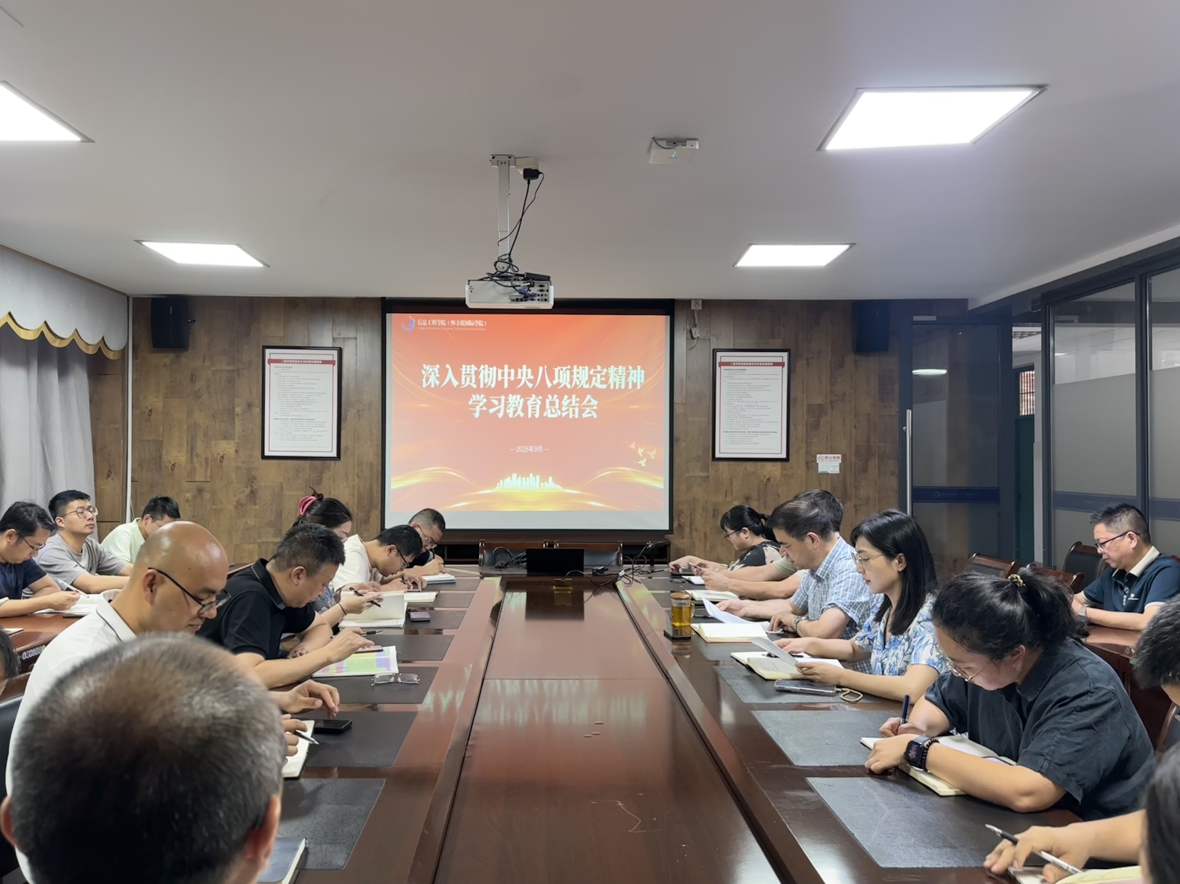 9月18日下午,党委组织召开深入贯彻中央八项规定精神学习教育总结会。中层及以上领导干部、各党支部书记参加会议。会议由党委书记丰辉主持。