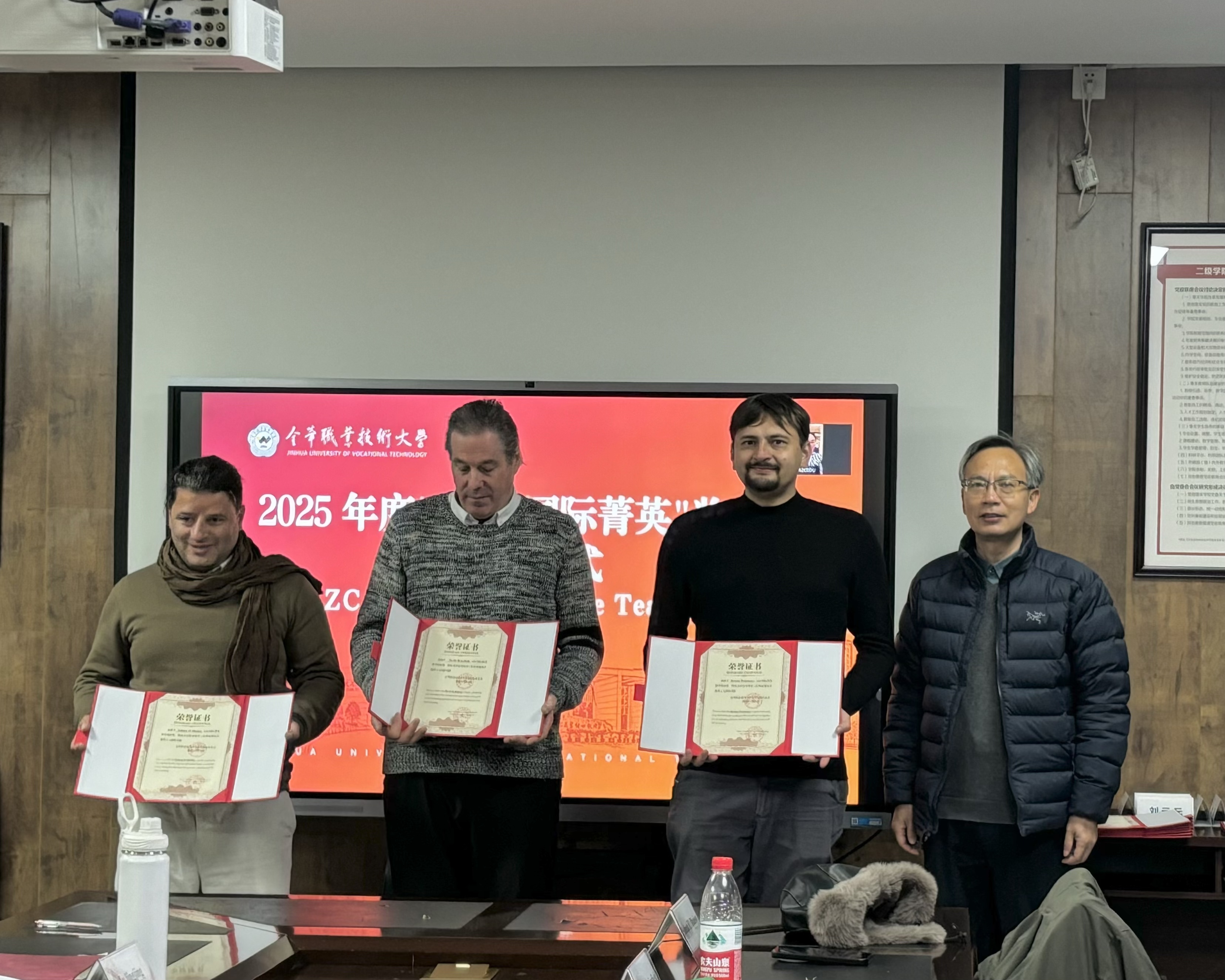在热烈的掌声中,颁奖环节依次进行。首先,王理凡处长为Salman El Dbaissy等三位外籍教师颁发教学科研类奖项;随后,郑朝灿院长与傅晶晶书记共同为信息工程学院陈焕通等七位教师颁发国际化贡献类奖项;最后,修瑞云副院长与张娴副院长共同为设计学院吕嘉楠等三位教师颁发同类奖项。全场以阵阵掌声,向这十五位中外籍教师的卓越贡献表达崇高敬意。