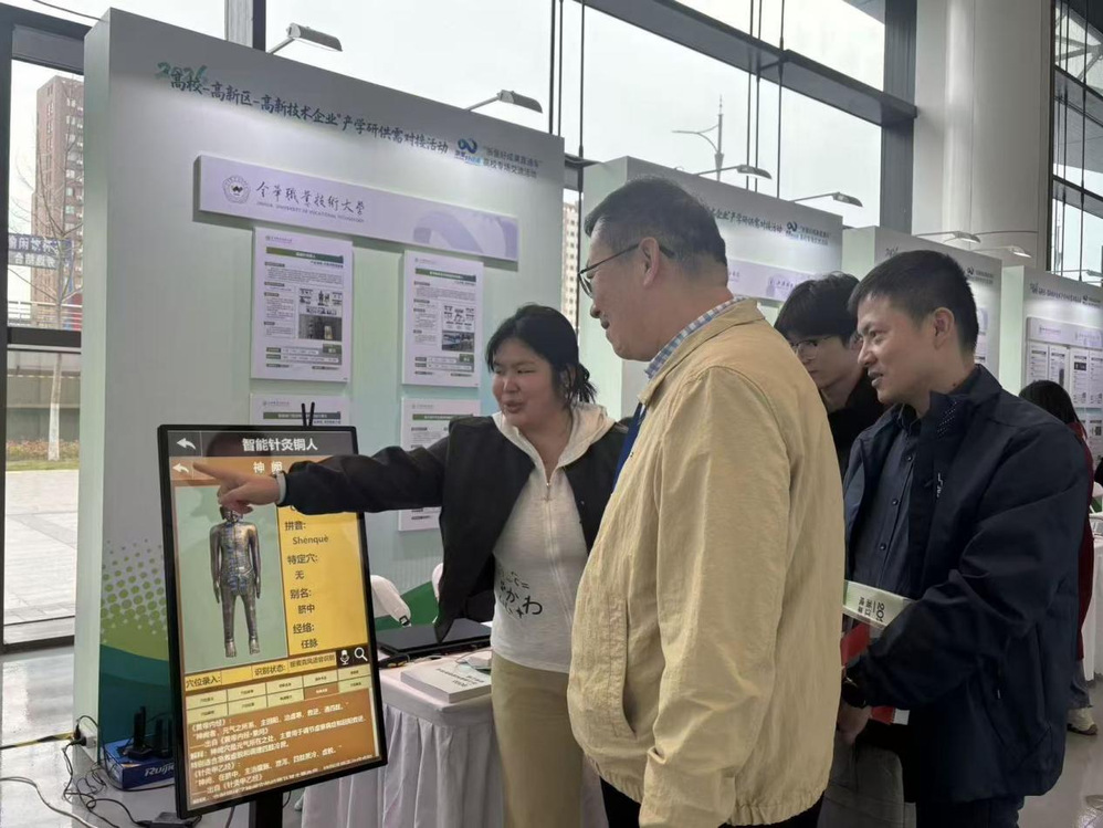 本次活动同期重点开展“浙里好成果直通车”高校专场交流活动,搭建起校地、校企精准对接的高效平台。信息工程学院高度重视此次成果交流,携具身智能自主巡检四足机器人、智能针灸铜人两项优质科技成果参展,集中展示学院在智能应急救援、AI+中医药教育领域的创新突破与产学研转化能力。本次参展的项目具身智能自主巡检四足机器人,聚焦高危消防救援场景,打造多模态感知消防机器狗救援系统,可实现火场快速搜救、智能控火与高效疏散,大幅提升应急救援安全性与效率。智能针灸铜人项目以AI技术赋能传统针灸教学,解决教学误差大、成本高、实训难等问题,助力中医药教育智能化、标准化发展。
