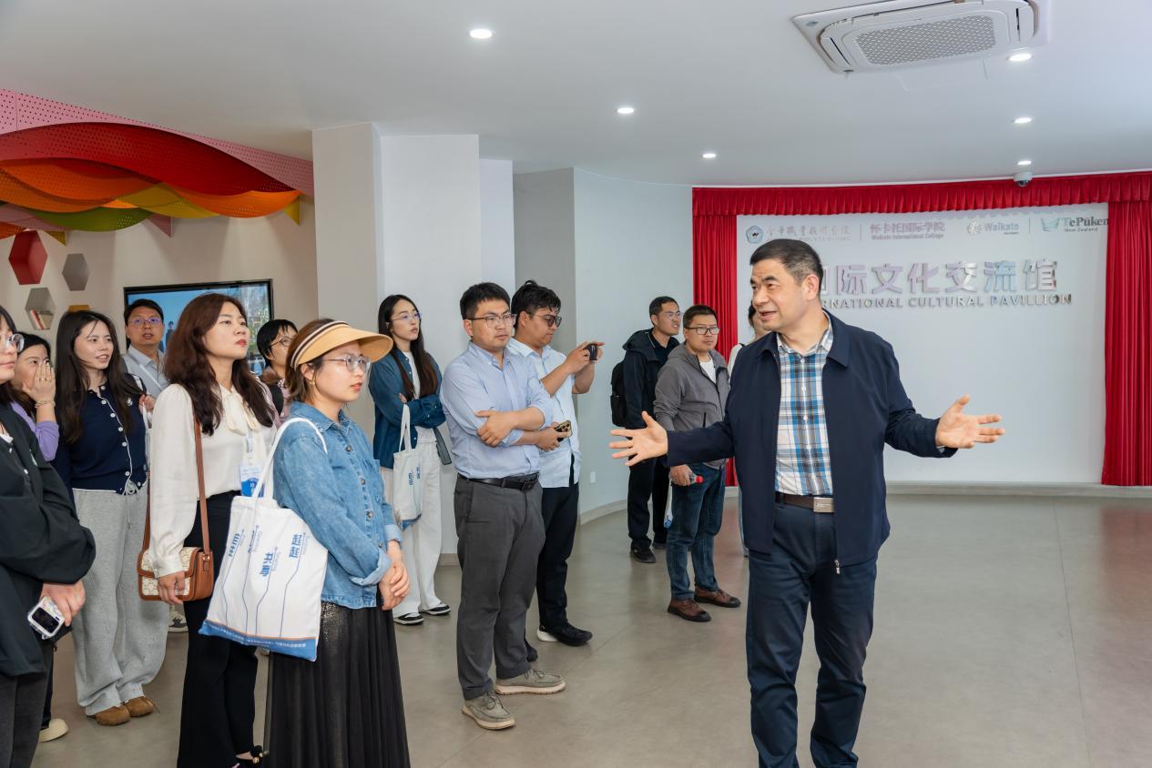 本次培训邀请沈阳大学校长赵彦志教授等8位领域专家开展专题报告,涵盖办学申报、法律规范、人才培养等多个维度,就中外合作办学中的重点难点问题进行了政策解读和经验分享。其中,学校怀卡托国际学院院长做题为《聚焦内涵、引进借鉴、特色发展——怀卡托国际学院办学实践》的专题报告,并于4月10日下午带领参训学员参观了该校国际文化交流馆、校史馆、智能化精密制造产业园等重点设施。。