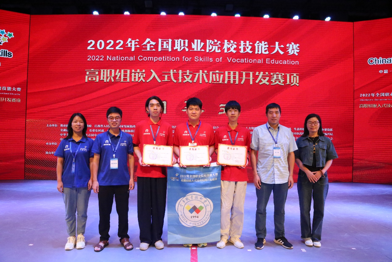8月29日-30日,2022年全国职业院校技能大赛高职组“嵌入式技术应用开发赛项”在九江职业技术学院举行,共有全国29个省市自治区的56支参赛队共168名选手参加。经过两天激烈角逐,由金华职业技术学院信息工程学院(怀卡托国际学院)刘子坚、范灵芝老师指导的高怀宇、李凌峰、陈武同学组成的参赛团队荣获大赛二等奖。