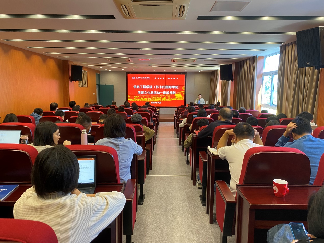 10月13日下午,信息工程学院(怀卡托国际学院)党委在218会议室开展第三季度全面从严治党专题会议暨“喜迎二十大 清•竞新发展”清廉文化教育活动,全体教职工参加。