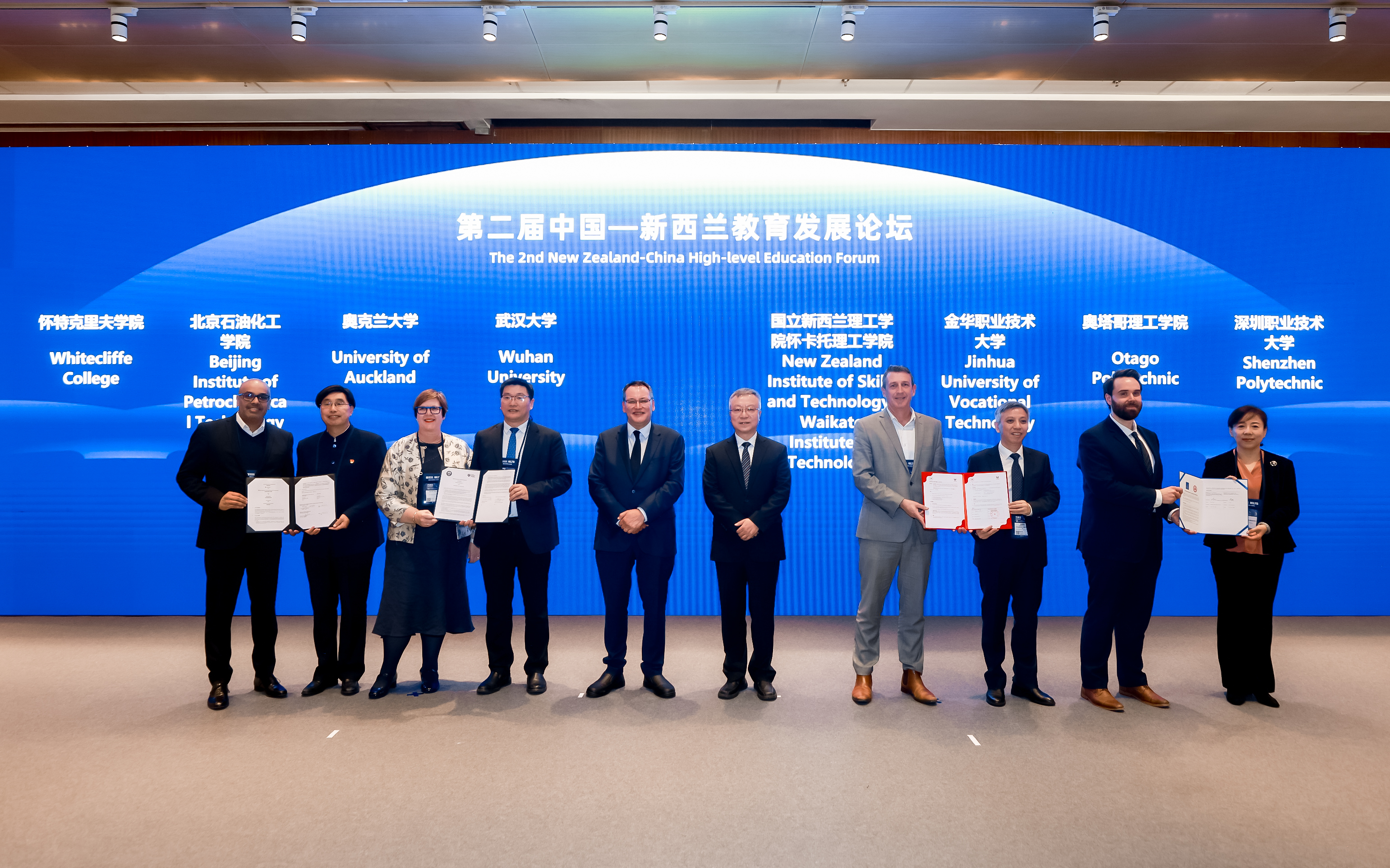 在双方部长的共同见证下,校长梁克东与新西兰怀卡托理工学院校长沃里克·皮茨(Warwick Pitts)展示了新签署的《金华职业技术大学与国立新西兰理工学院怀卡托理工学院国际合作备忘录》。双方明确将在合作办学、师资培训、学生交流、科研合作等多个领域开展深度合作。