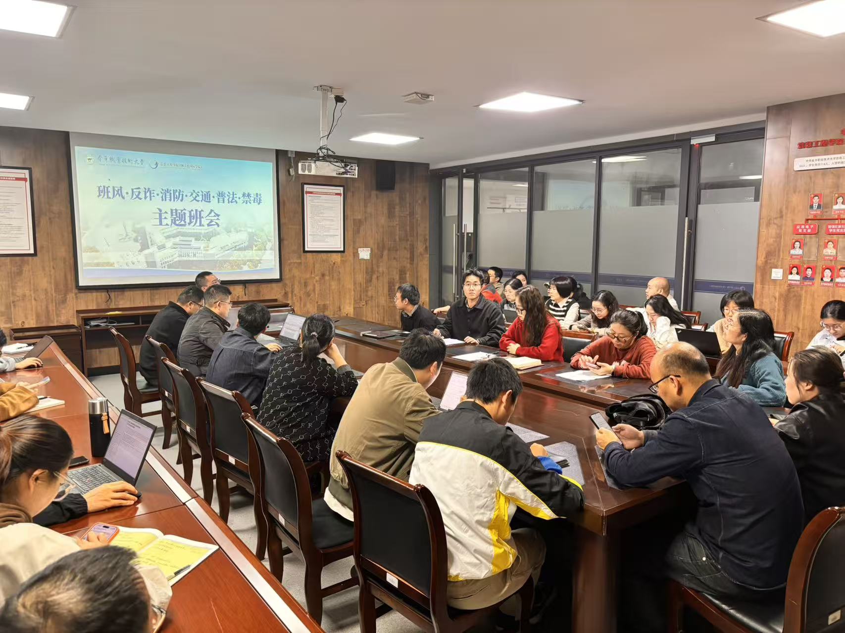 本次活动分为两部分,第一部分为专题培训会议。学院召集全体班主任进行集中培训,围绕防范电信网络诈骗、识别毒品危害、遵守交通法规、增强法制观念及火灾自救逃生等关键安全议题进行了系统深入的讲解与学习,为后续教育活动的有效开展奠定了坚实的基础。