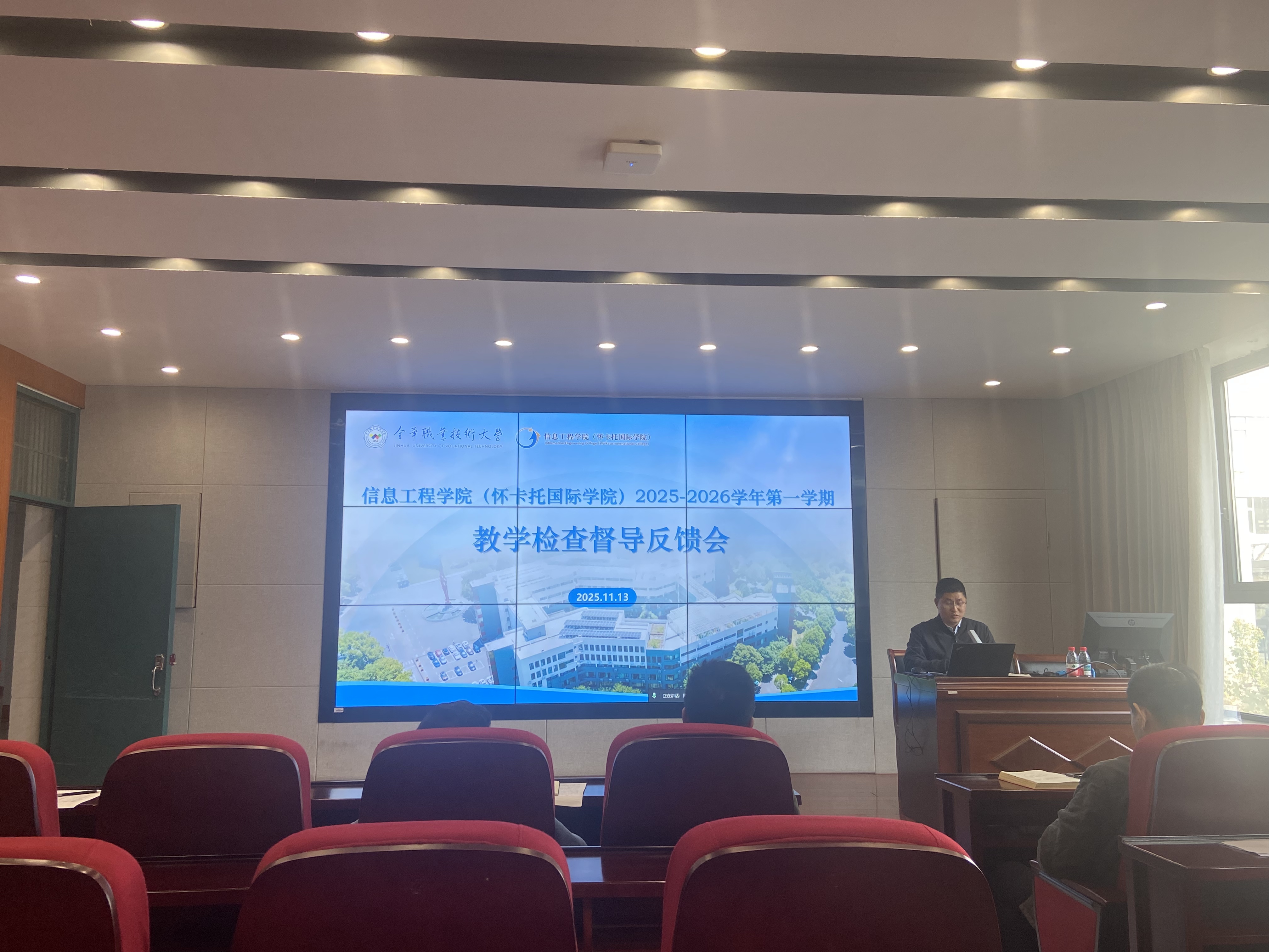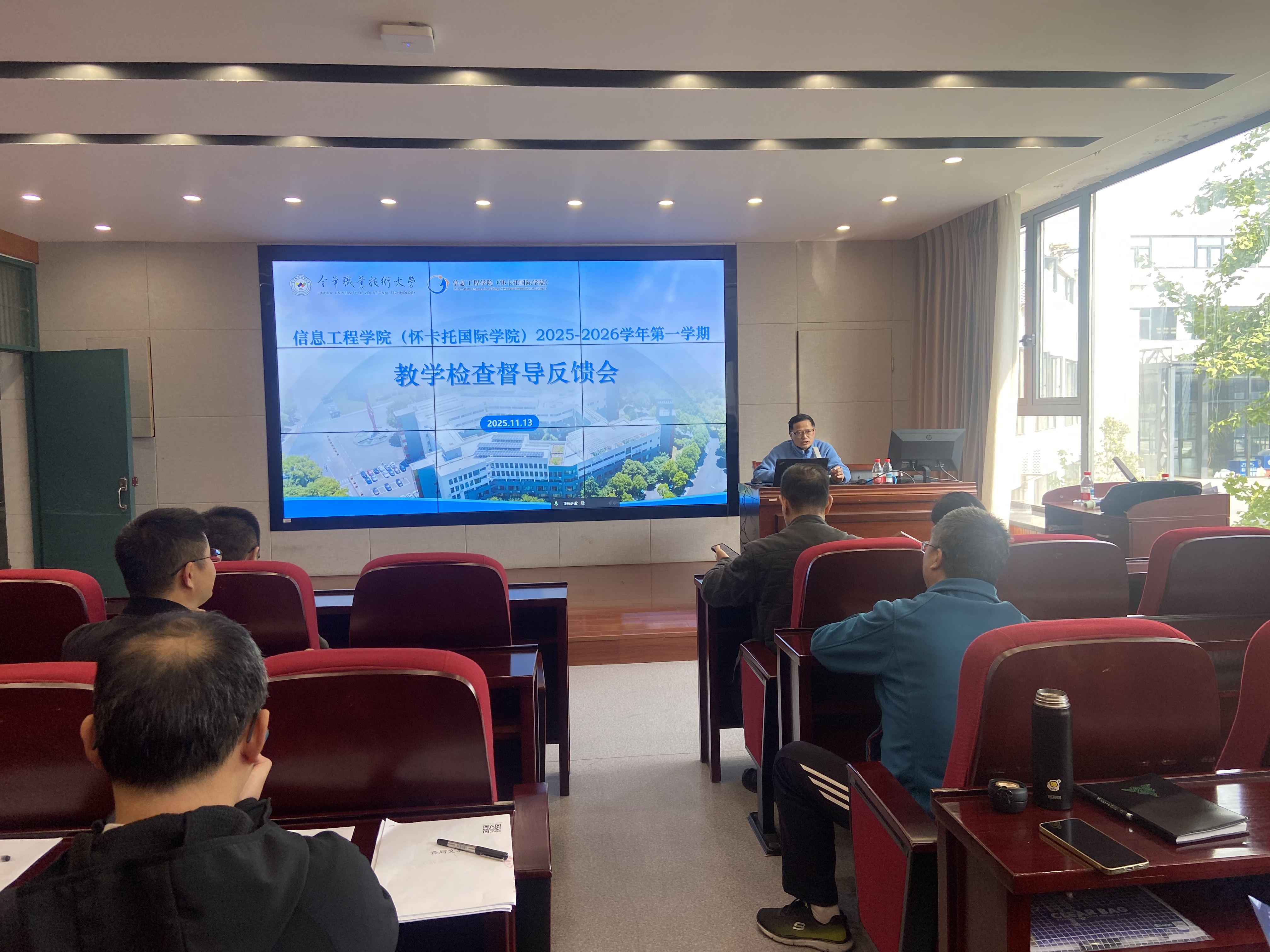 信息工程学院(怀卡托国际学院)于2025年11月13日下午在东实北218会议室召开本学期督导反馈会,全院教职员工参参会。反馈会由学院党委委员陈群挺主持,学院专职督导王成福、马汝星、余红娟、朱墨池老师依次就本学期听课情况做具体反馈。