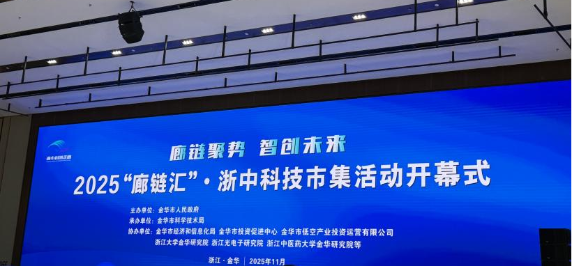 2025年11月20日,由金华市人民政府主办、金华市科学技术局承办的“廊链聚势 智创未来——2025‘廊链汇’・浙中科技市集活动”在金华君澜大饭店隆重开幕。我院刘子坚、张莹、范灵芝、徐晶晶等老师组成的团队,作为合作方代表受邀出席开幕式,并现场重点展示介绍了我院与金华市晨茜物联科技有限公司联合研发的空地协同智能巡检系统SkyLinkX01。