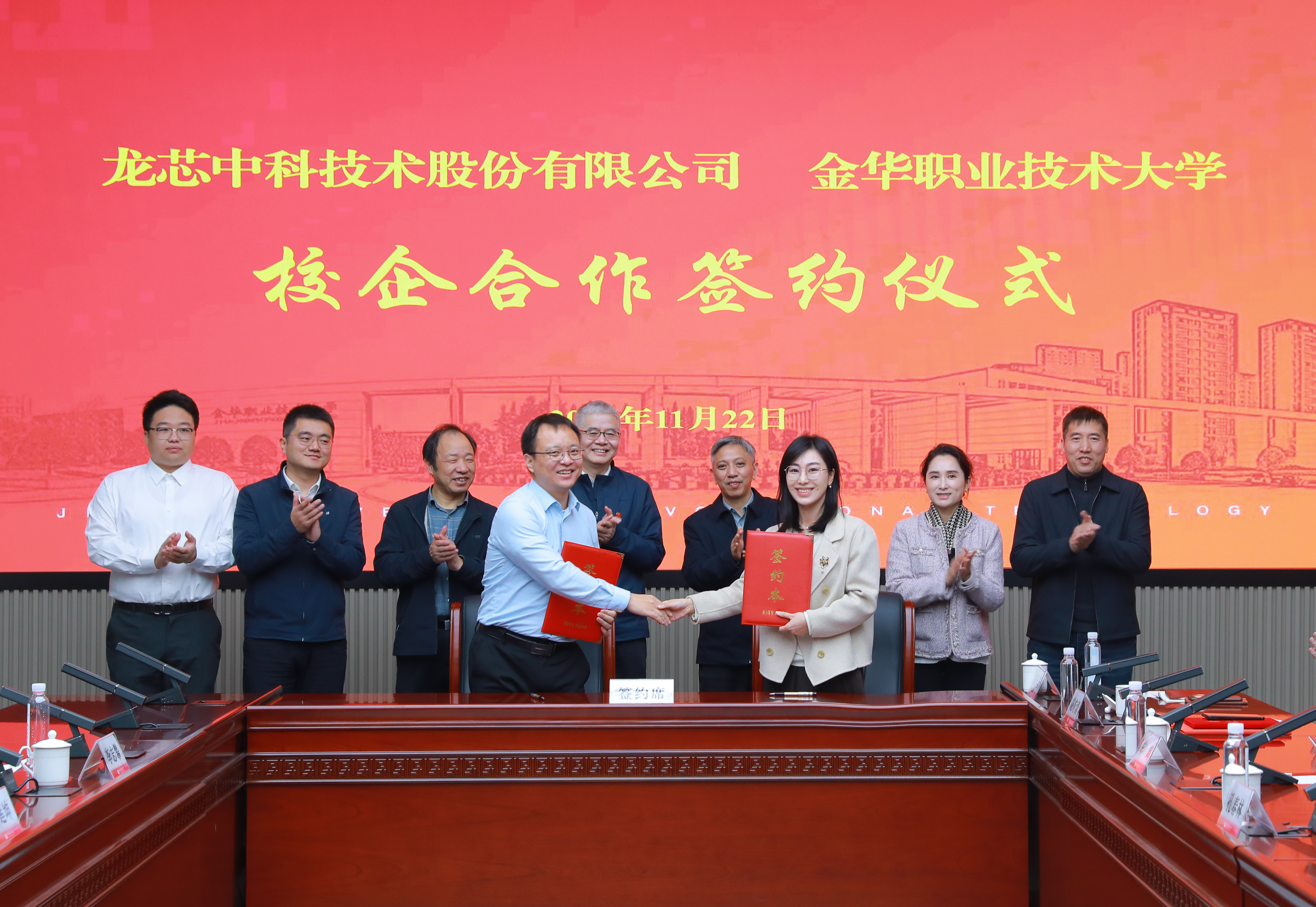 11月22日下午,金华职业技术大学与龙芯中科技术股份有限公司举行校企合作签约仪式。龙芯中科董事长、总裁胡伟武,金华市集成电路及信创产业链专班总联络员、市科协党组成员孔春林,金职大校长梁克东,相关职能部门和信息工程学院相关负责人等出席仪式。签约仪式由金职大副校长陈夙主持。